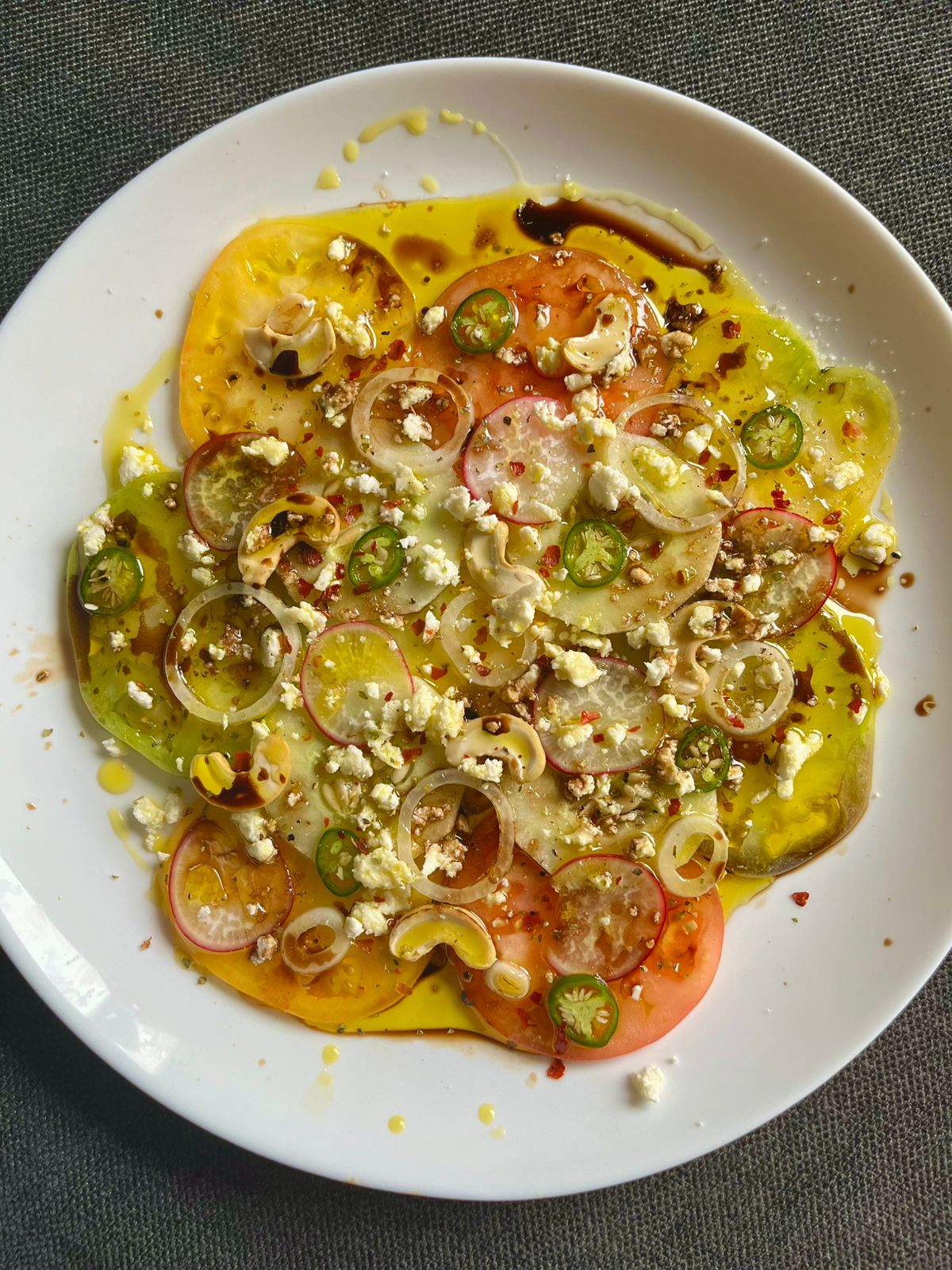 - Caprese Salad tomatoes, mozzarella, herbs, balsamic vinegar