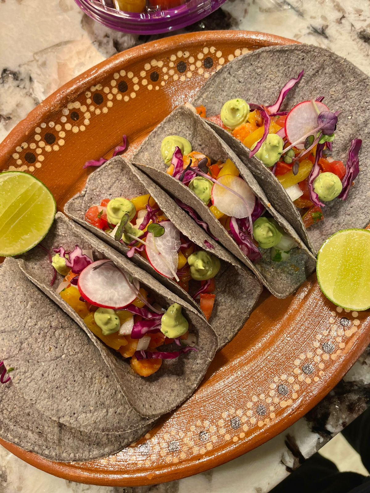 - Tacos (choose 2: chicken/beef/pork/fish/shrimp/veggie), salsas